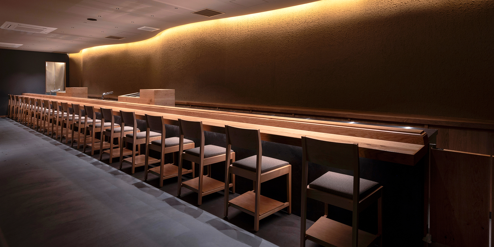 ダミーです。日本橋兜町のpâtisserie ease。パティスリーとしては珍しいオープンキッチンを採用することで、そこに作り手たちの表情や声、技工、甘い馨香が混ざり合い、訪れるお客様が叙情的に"pâtisserie ease"を体感できる空間とした。